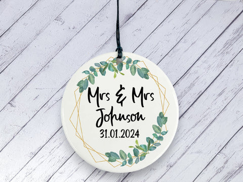 Engagement gift - Mrs & Mrs Botanical Personalised Ceramic circle