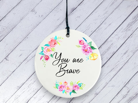 Motivational Gift - You are Brave - Floral Ceramic circle