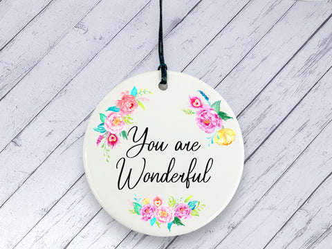 Motivational Gift - You are Wonderful - Floral Ceramic circle