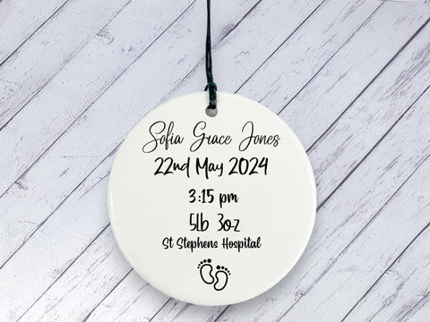 New baby keepsake announcement Gift- Personalised Ceramic circle