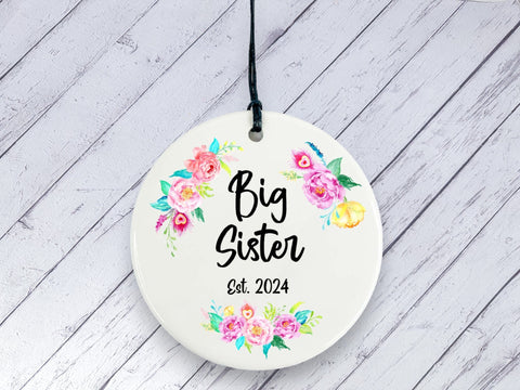 Pregnancy Reveal Gift for Big Sister - Floral Ceramic circle