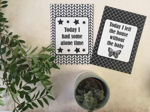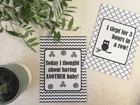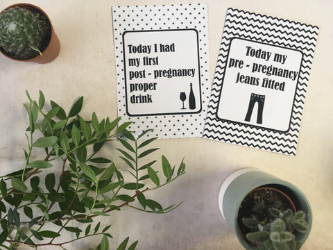 Mummy Journey Cards in our Monochrome design to help celebrate your journey through life's milestones and funny moments These make a unique and alternative gift for a friend or relative for a baby shower or for someone who has just had a baby.