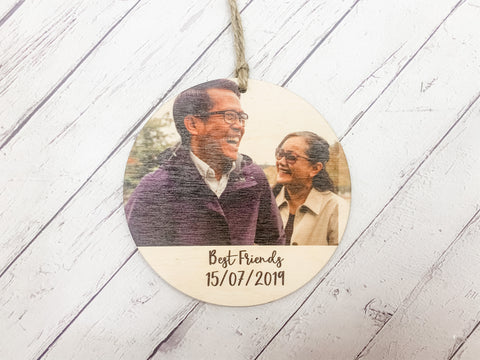 The front of the circle will be printed with your choice of photo, and you can either have a message on the front or full photo. Please send your photo after purchase via email to info@diosdesigns.co.uk. Please send photos uncropped and in the largest possible size for best results.