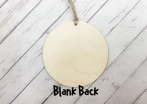 Printed wooden circle plaque made from 4mm thick birch plywood.