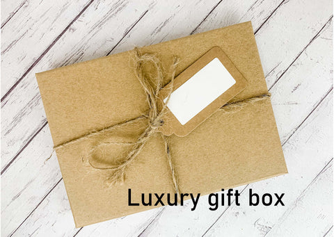 Comes packaged in organza bag as standard, but you can upgrade to a gift box.