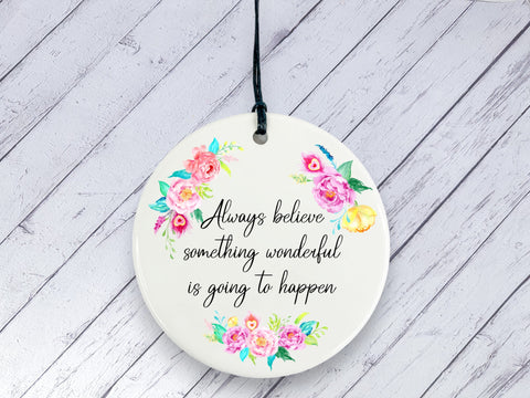 Motivational Gift - Always believe something wonderful is going to happen - Floral Ceramic circle