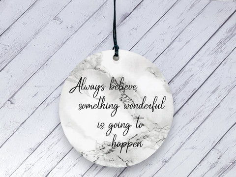 Motivational Gift - Always believe something wonderful is going to happen - Marble Ceramic circle