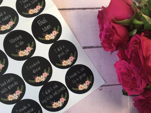 Set of 24 Journey stickers for Mummies to celebrate those small day to day milestones that aren't always easy to achieve with little ones. These would make a unique and lighthearted baby shower gift or gift for a new mum.