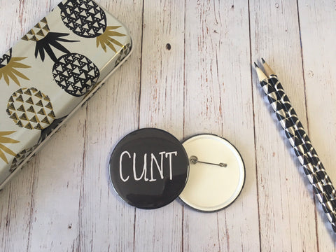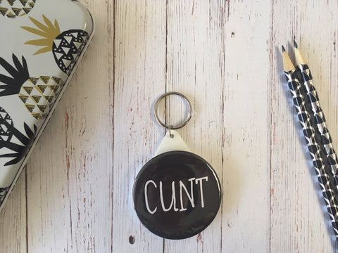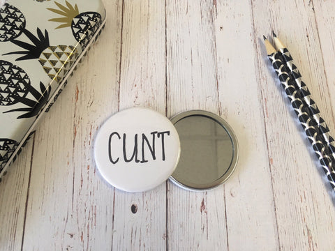 SWEARY C*nt Badge Magnet Keyring Mirror Monochrome