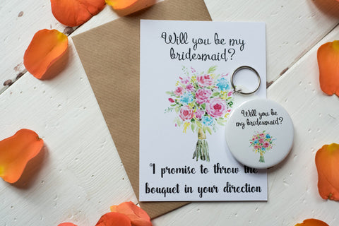 Wish Bracelet, Badge, Magnet or Keyring - Will you be my bridesmaid? - Bouquet