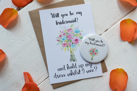 Wish Bracelet, Badge, Magnet or Keyring - Will you be my Bridesmaid? Funny Dress