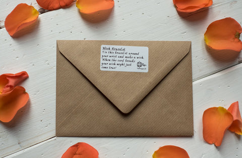 Each A6 postcard print comes with a brown kraft envelope and the wish bracelets have a label on the back explaining how the wish bracelets can be used.