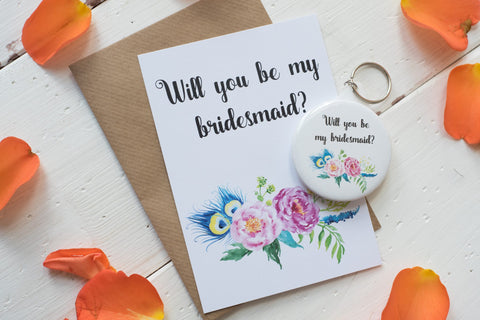 Wish Bracelet, Badge, Magnet or Keyring - Will you be my Bridesmaid? Floral