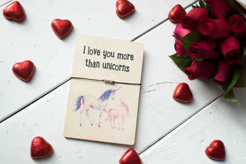 Each Wooden Postcard comes with a brown kraft envelope and the wish bracelets have a label on the back explaining how the wish bracelets can be used.