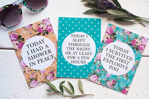 Mummy Journey Cards in our Chalkboard Floral design to help celebrate your journey through life's milestones and funny moments These make a unique and alternative gift for a friend or relative for a baby shower or for someone who has just had a baby.