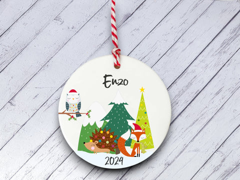 Ceramic Circle Decoration - Child's name personalised festive friends