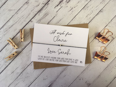 You can choose between the basic wording shown on the first photo or you can personalise the postcard with your own message such as the example in the second photo. We can fit in a maximum of 30 characters per line, and a maximum of two lines. The lines will have a space inbetween them as shown in the example photo so that the bracelet fits neatly between the lines of text. Please provide this message at checkout word for word as you would like it printed and check for spelling errors. We will not send proofs. If you cannot find the box at checkout, please send us a conversation with the message required. This is a chargeable service and you must choose 'Yes Please' for 'Personalised Wording' and pay the additional charges for this. Any requests for personalised messages without selection and payment of this service will not be created and you will receive the standard wording.